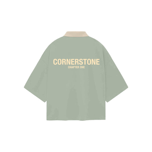 BOXY CROPPED COLLARED SHIRT IN SMOKE GREEN
