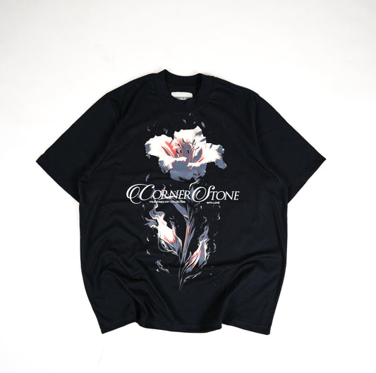 OVERSIZED TEE IN BLACK "GOLD ROSE"