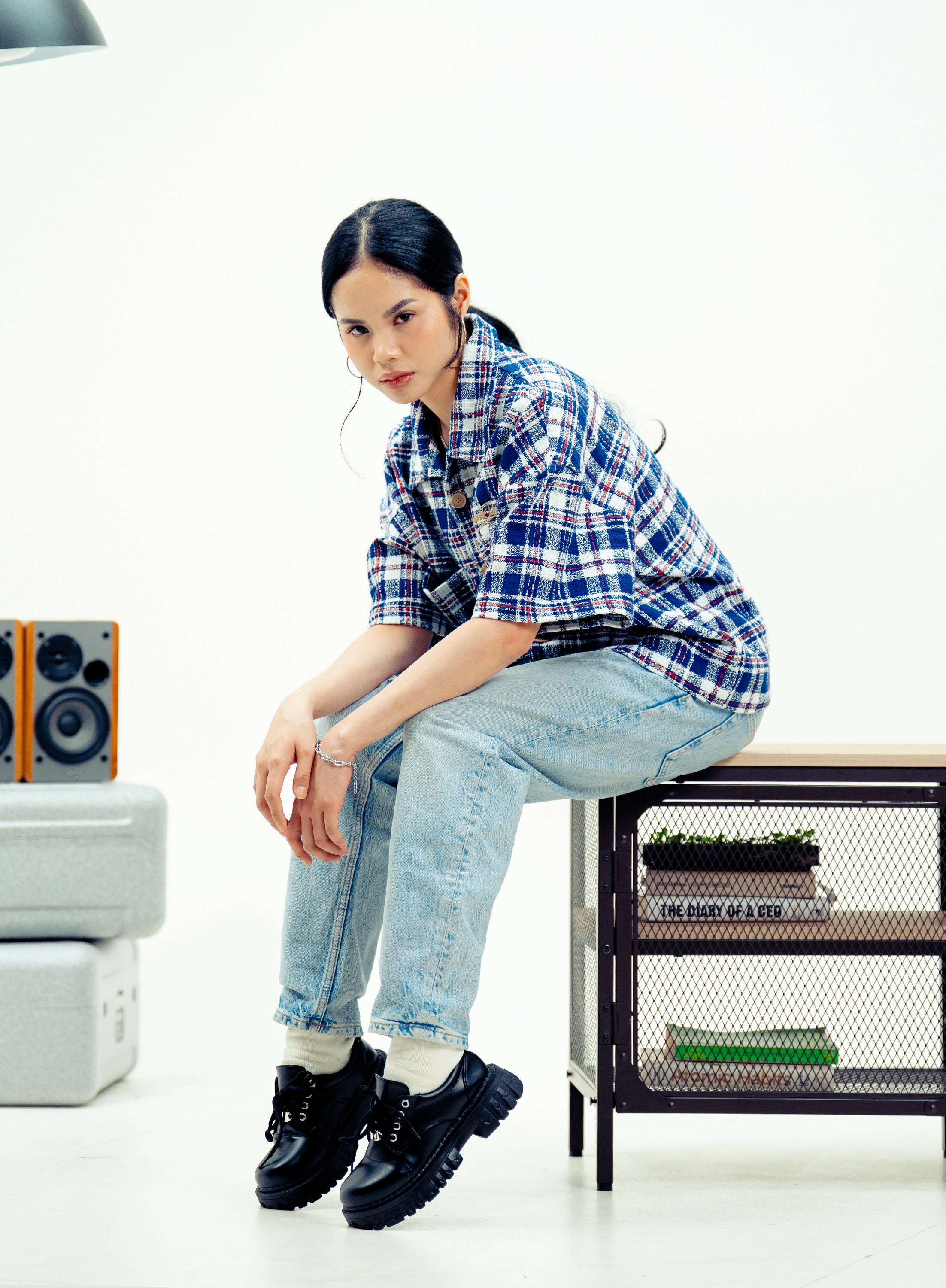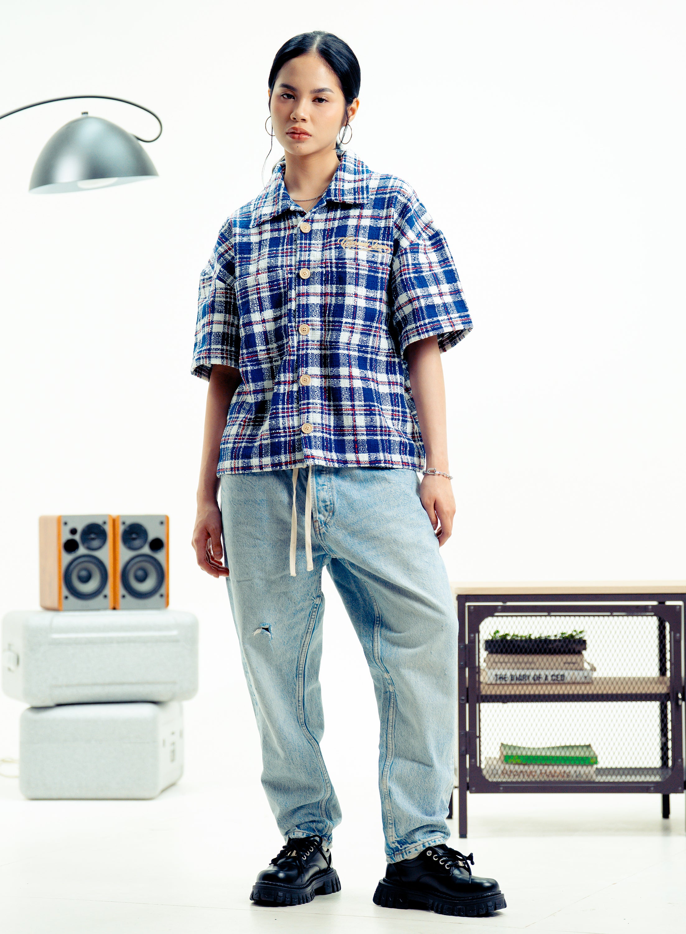 CORNERSTONE TWEED BUTTONED POLO "ROYAL GRID"