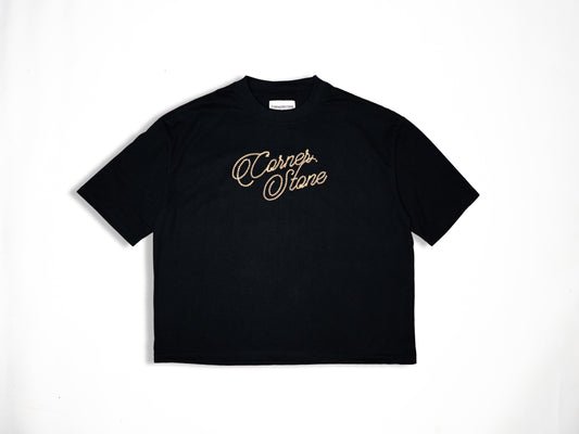 BOXY CROPPED CHAINSTITCH CURSIVE TEE