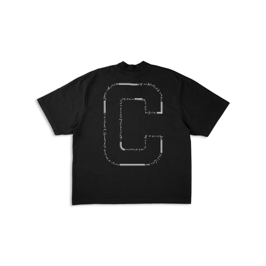 BOXY CROPPED CHAINSTITCH CURSIVE TEE