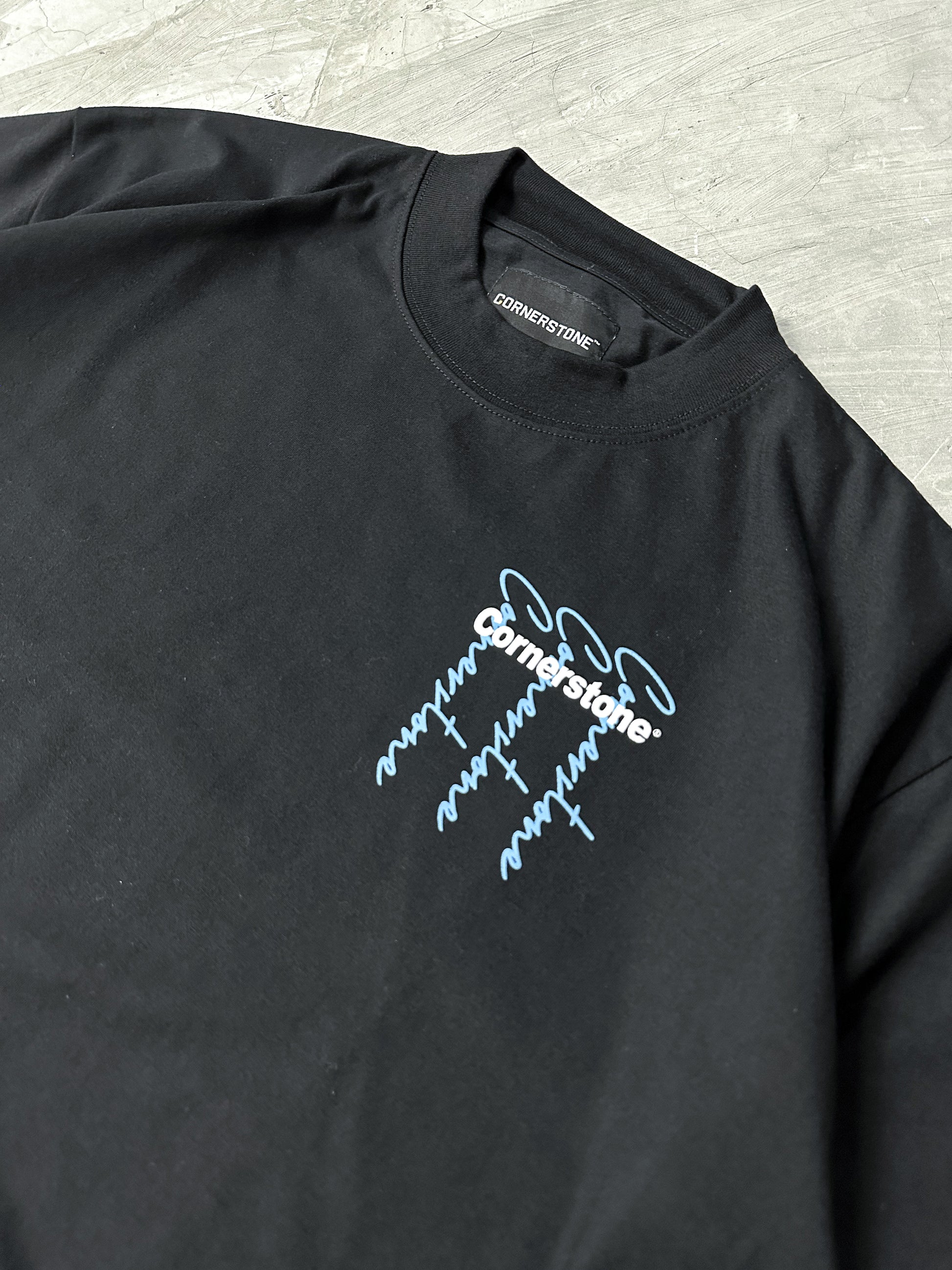 The Cursive T-Shirt in Black is made from medium weight cotton, with an oversized fit.