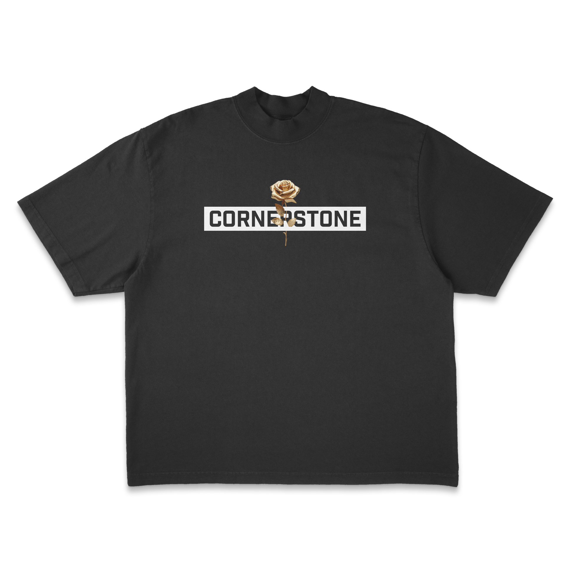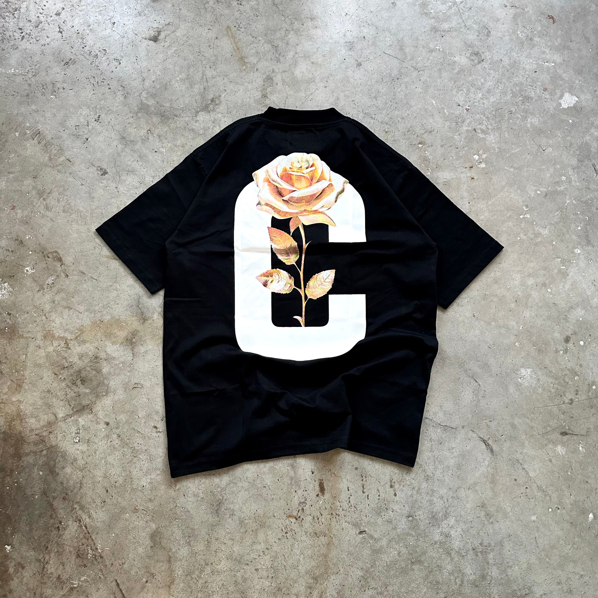 OVERSIZED TEE IN BLACK "GOLD ROSE"