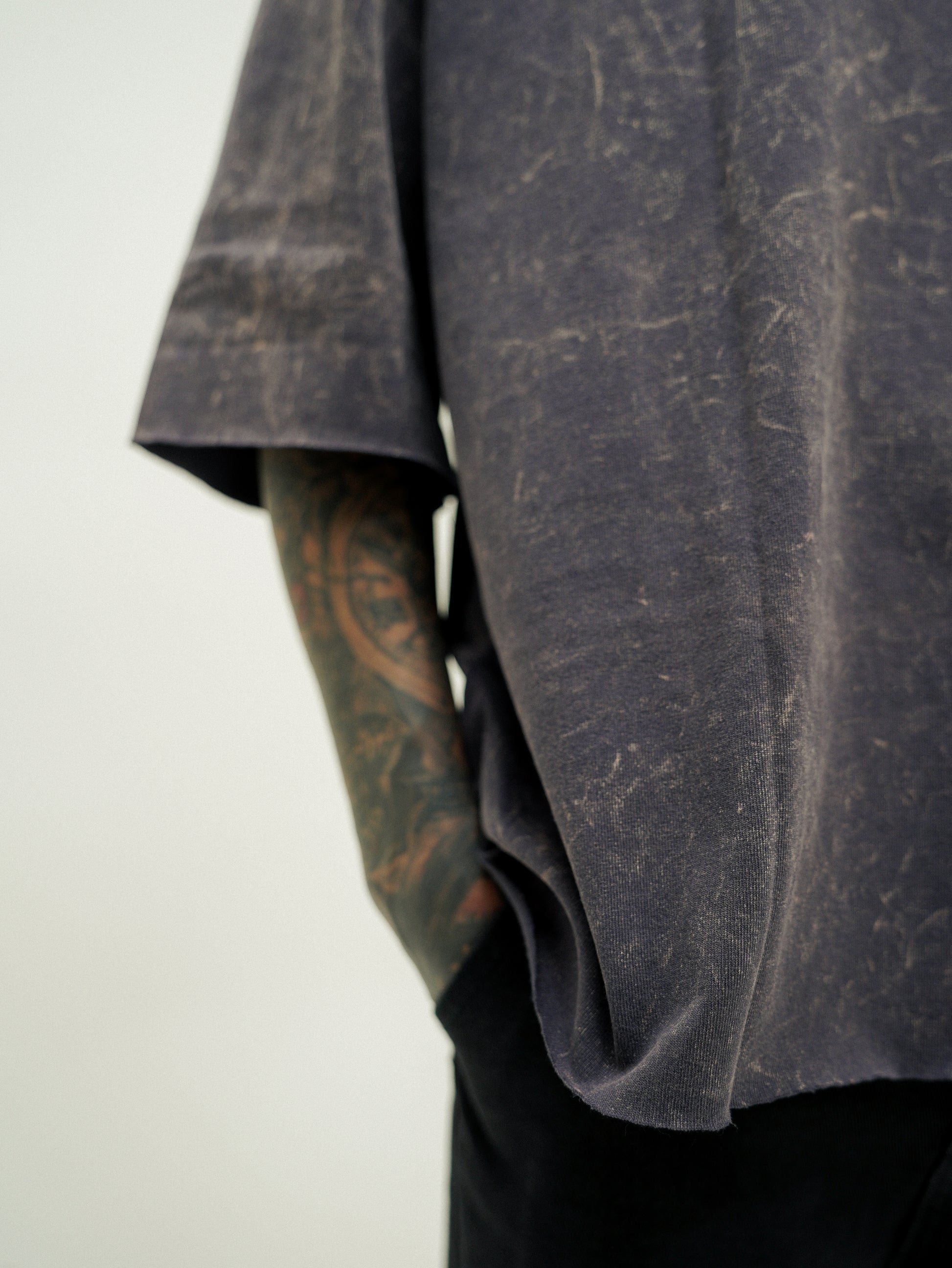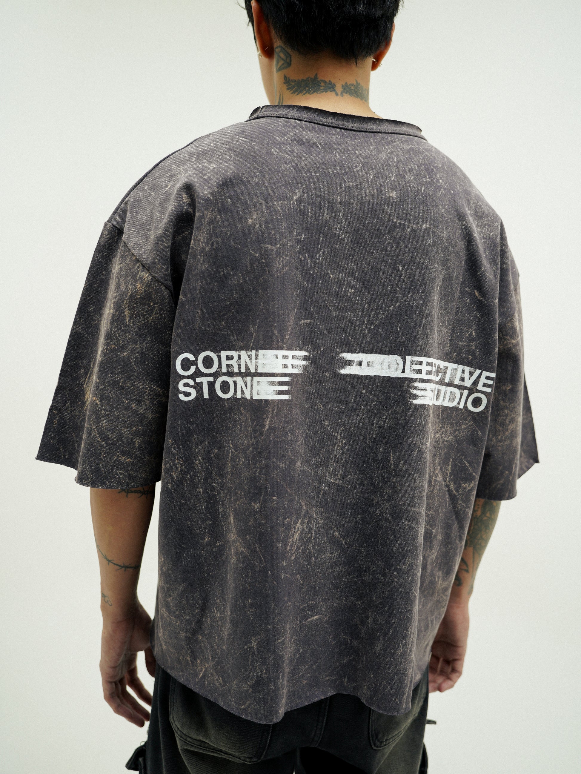 RAW HEM ACID WASH TEE "COLLECTIVE"