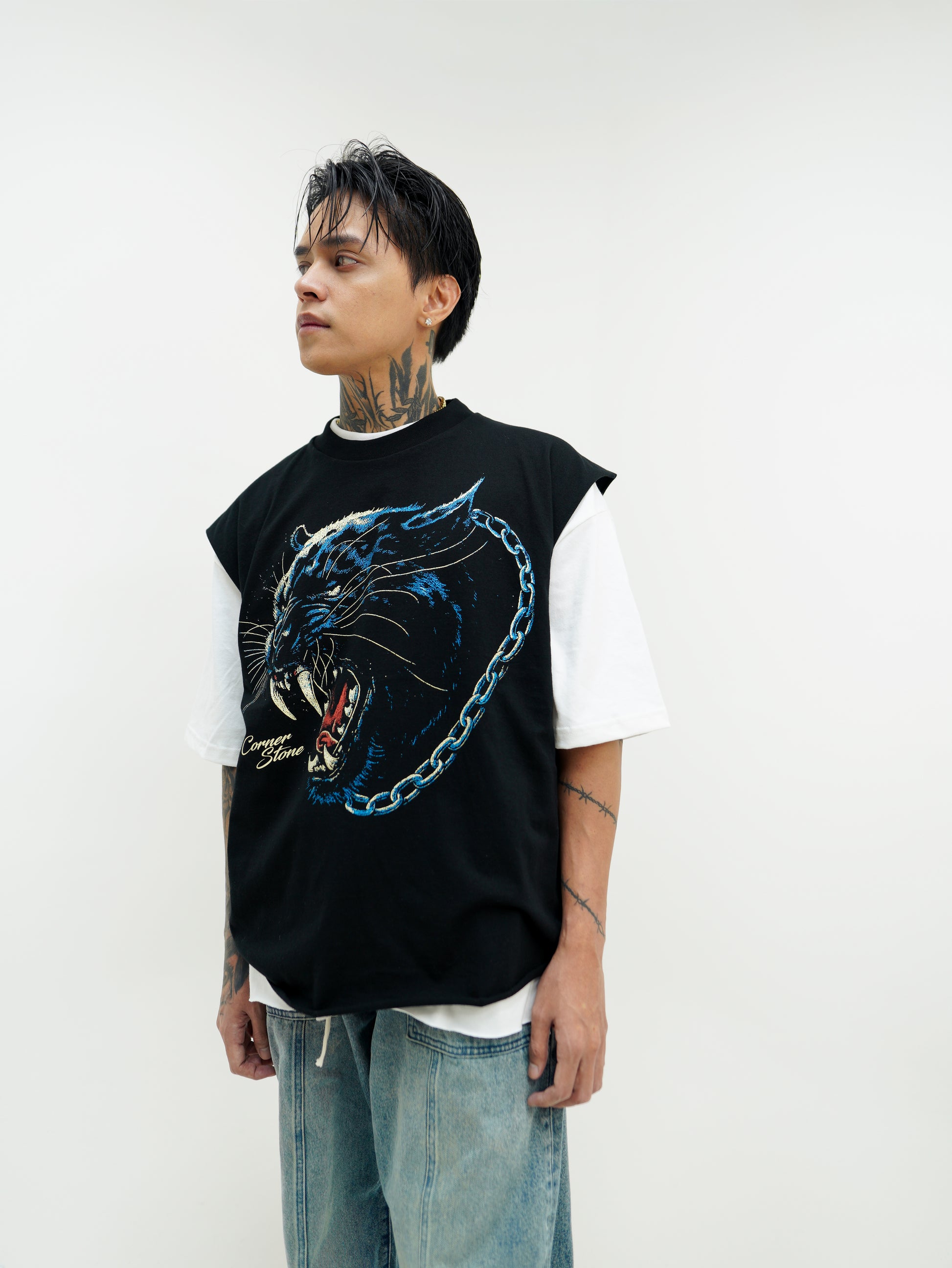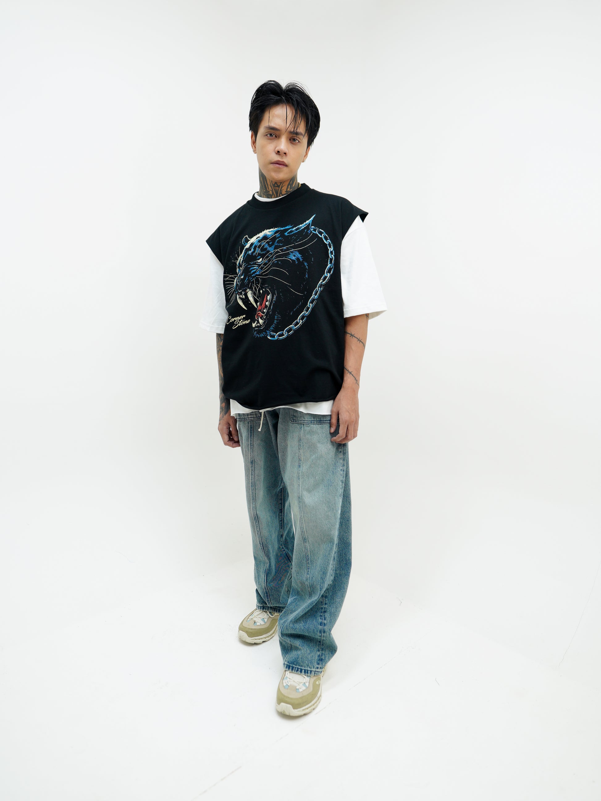 Crafted from premium 100% cotton, this raw hem muscle tee delivers authentic streetwear appeal with a distinctive silkscreen-printed Panther graphic design. The unfinished raw hem edge adds contemporary edge and visual interest, while the relaxed fit of the muscle cut provides comfortable everyday wear. Perfect for layering or standalone styling, this piece combines quality construction with bold graphic storytelling.