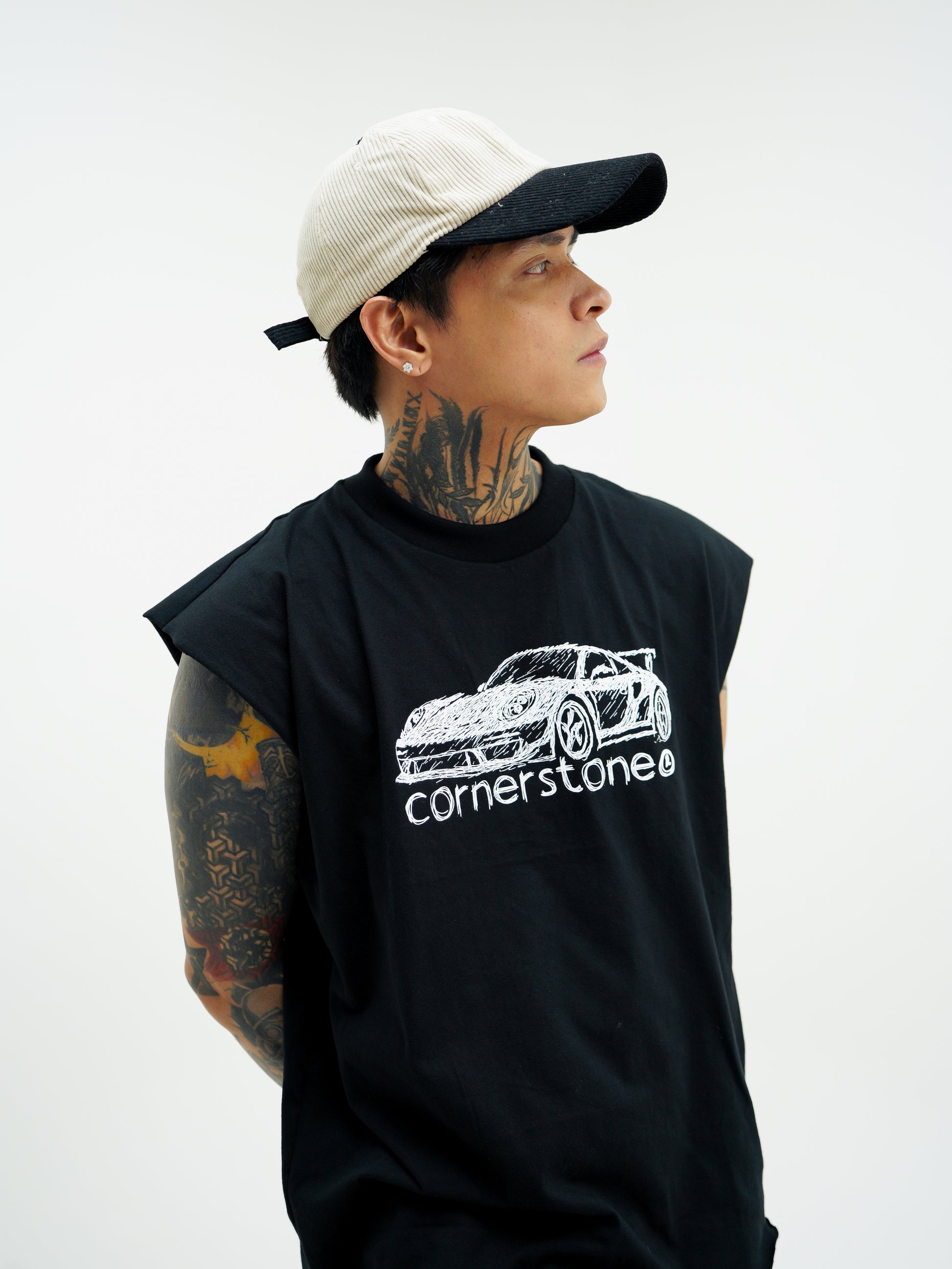 RAW HEM NO RISK NO PORSCHE MUSCLE TEE